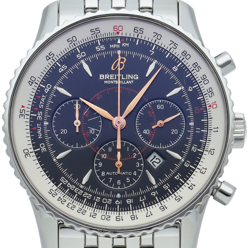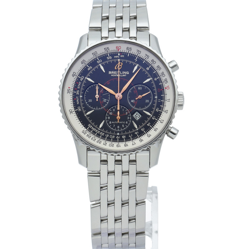 1942年に発表された世界初の回転計算尺付き腕時計クロノグラフの気品あるデザインを復刻した名作モデル。直径38mmのコンパクトなクロノグラフとして、性別を問わず愛されています。ムーブメントは小型かつ高い信頼性を誇るブライトリング41を搭載。A41370。