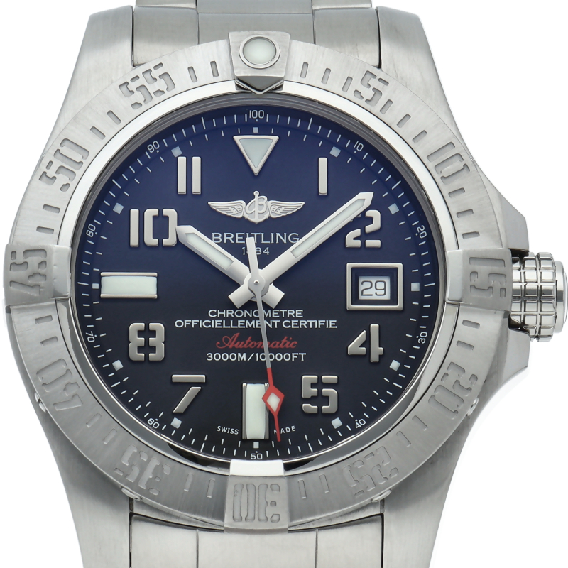 45ミリオーバーのボリューム抜群のケースに操作性の高いベゼルとリューズを備えています。地上はもちろん深海のような過酷な環境下でも抜群の視認性を誇ります。プロフェッショナルな機能を追求した、強靱なダイバーズウォッチです。A17331/A1733110/BC31