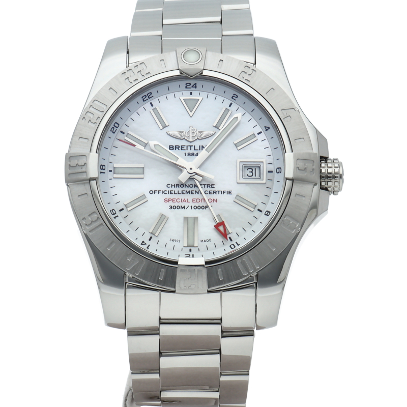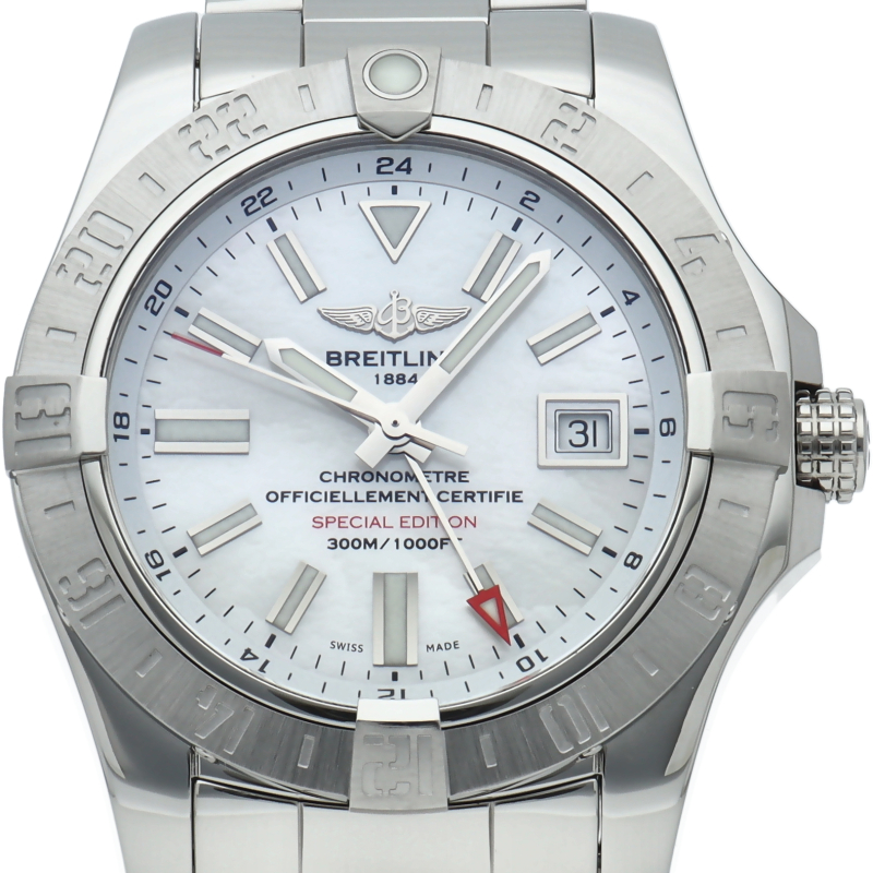 プロフェッショナルのための真の計器“アベンジャーII ”のGMTモデルです。赤いGMT針と回転ベゼルを活用することで、同時に3つの時間帯の時刻を表示することができます。人間工学に基づいて設計されたベゼルのライダータブは、機能性と見た目の美しさを両立した同モデルのシンボルです。日本限定モデル。A32390/A3239011/A809。