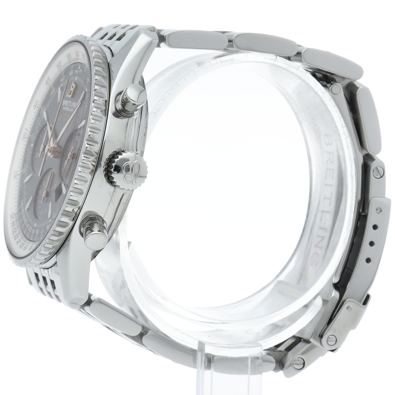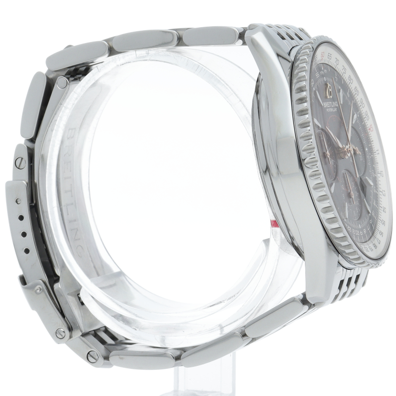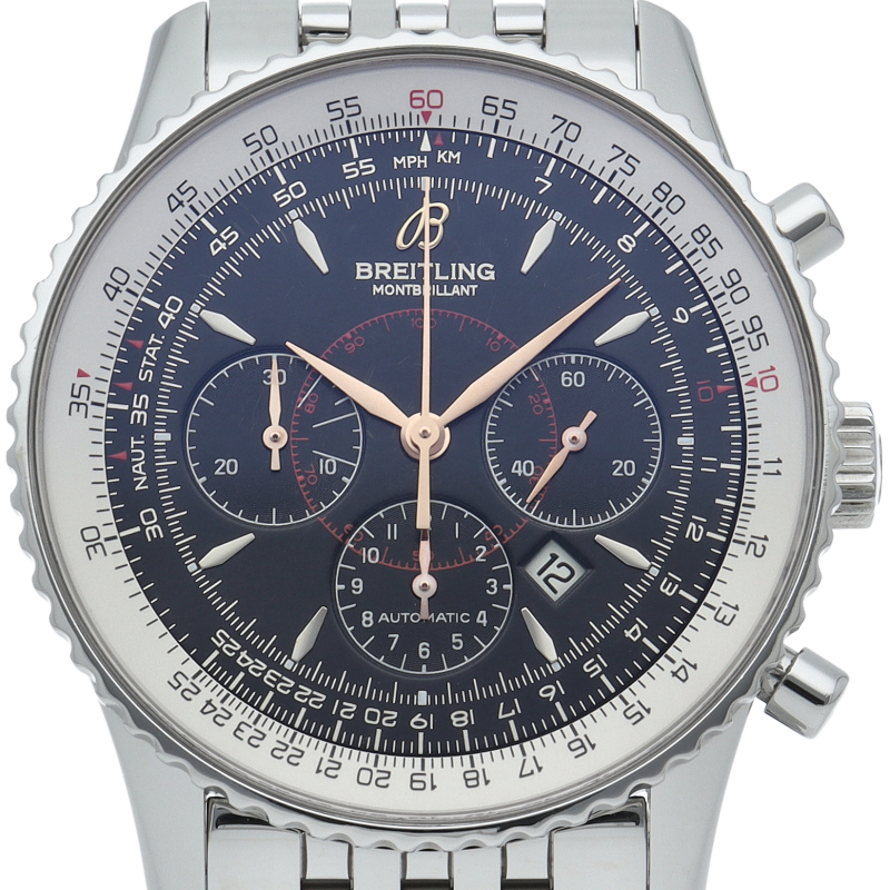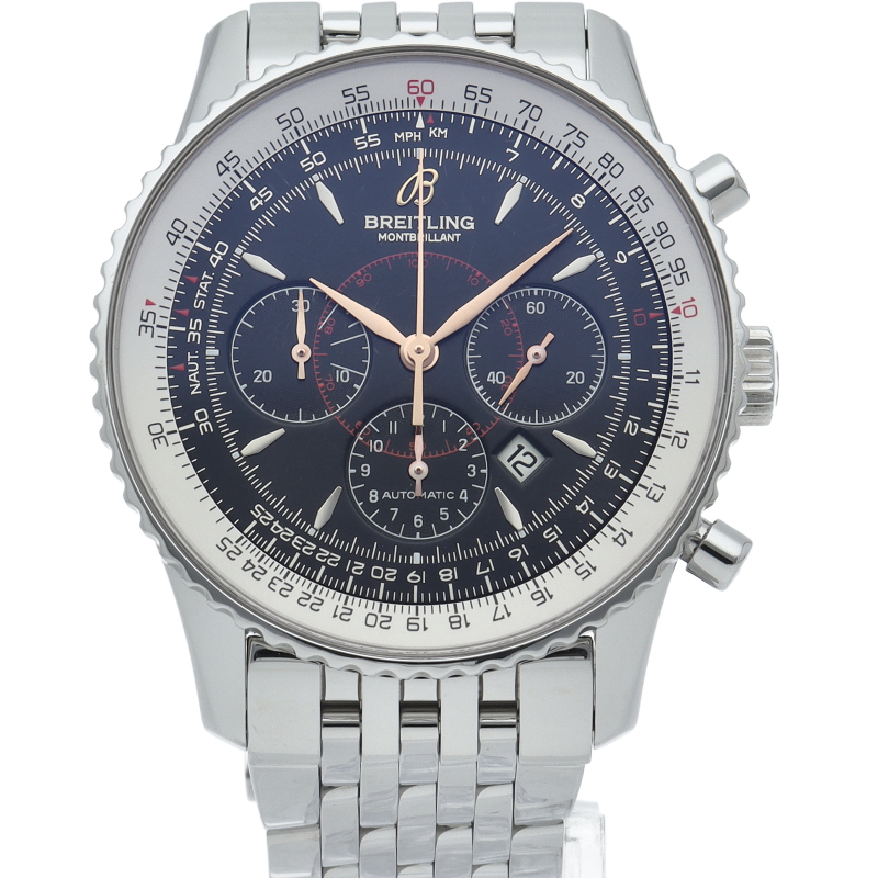 1942年に発表された世界初の回転計算尺付き腕時計クロノグラフの気品あるデザインを復刻した名作モデル。直径38mmのコンパクトなクロノグラフとして、性別を問わず愛されています。ムーブメントは小型かつ高い信頼性を誇るブライトリング41を搭載。A41370/A417B75NP。