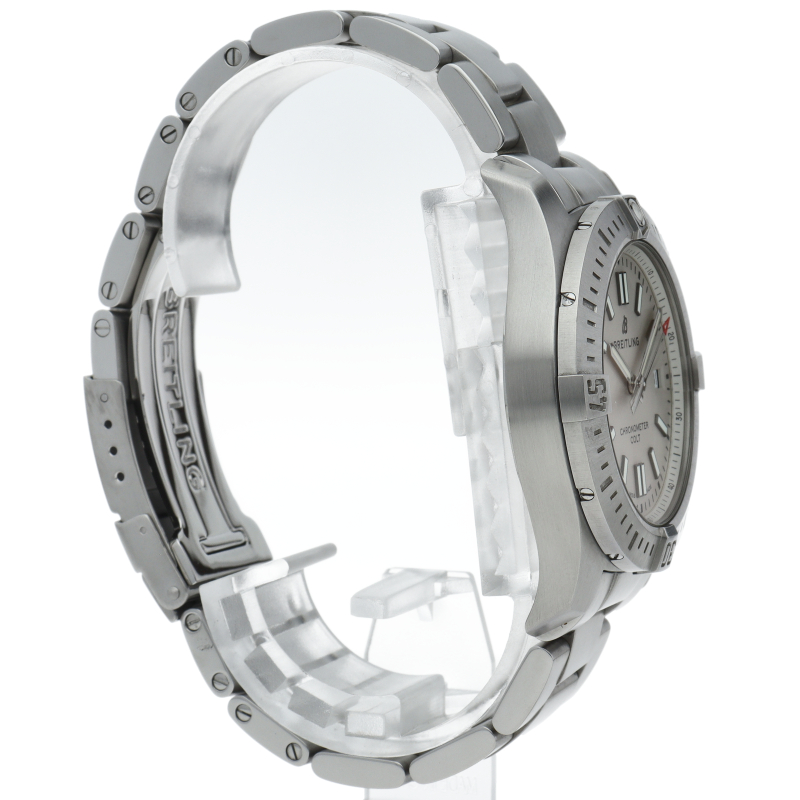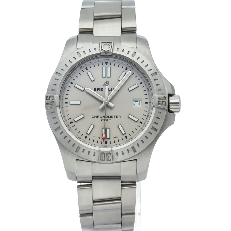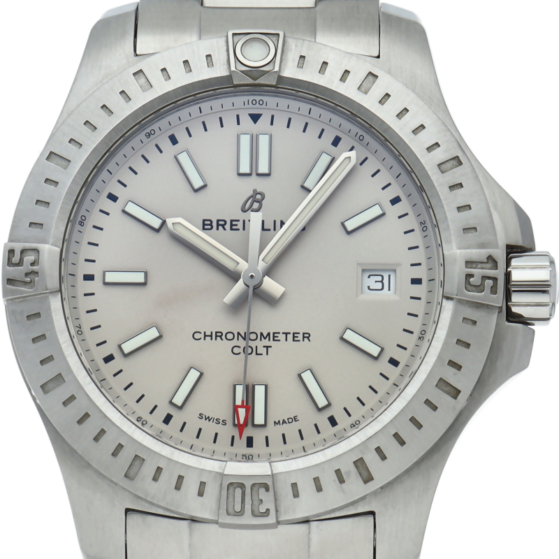 元は軍用時計としてデザインされ、2014年に復活を果たした「コルト」。ムーブメントにはCOSC公認のブライトリング17を搭載します。大変リーズナブルな価格で人気度の高いモデルです。A17313/A17313101G1A1。