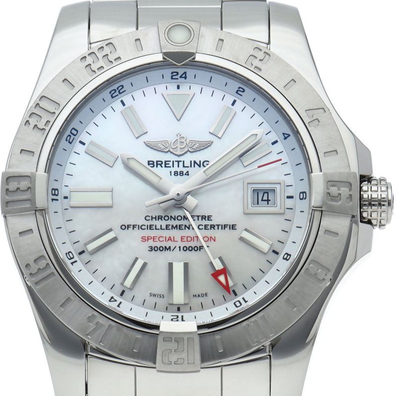 プロフェッショナルのための真の計器“アベンジャーII ”のGMTモデルです。赤いGMT針と回転ベゼルを活用することで、同時に3つの時間帯の時刻を表示することができます。人間工学に基づいて設計されたベゼルのライダータブは、機能性と見た目の美しさを両立した同モデルのシンボルです。日本限定モデル。A32390/A3239011/A809。