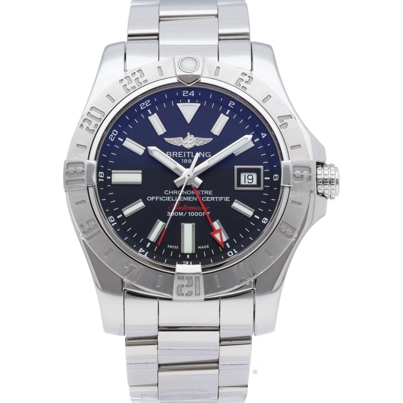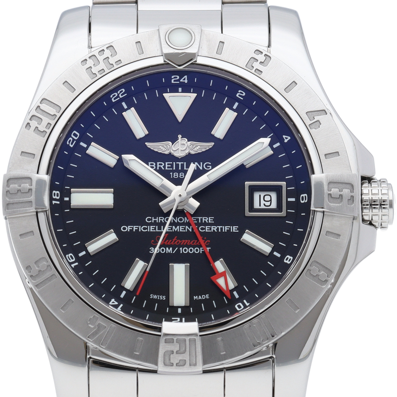 300mもの防水機能とGMT機能を備えた「アベンジャーII GMT」。24時間表示インデックスが刻まれたベゼルを操作することで第3タイムゾーンまでの時間が分かるようになっています。A32390/A3239011/BC35