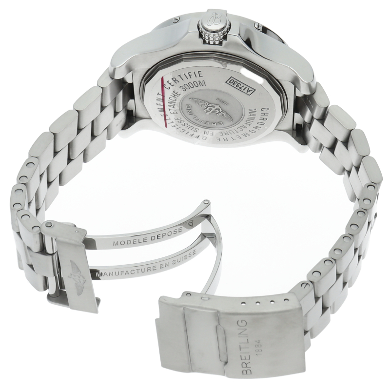 45ミリオーバーのボリューム抜群のケースに操作性の高いベゼルとリューズを備えています。地上はもちろん深海のような過酷な環境下でも抜群の視認性を誇ります。プロフェッショナルな機能を追求した、強靱なダイバーズウォッチです。A17330/A1733010/B906。