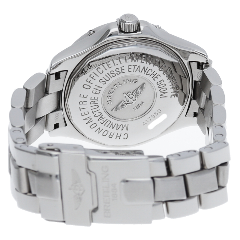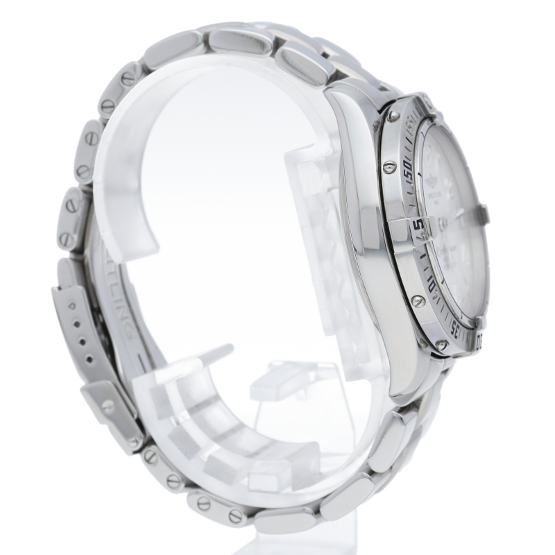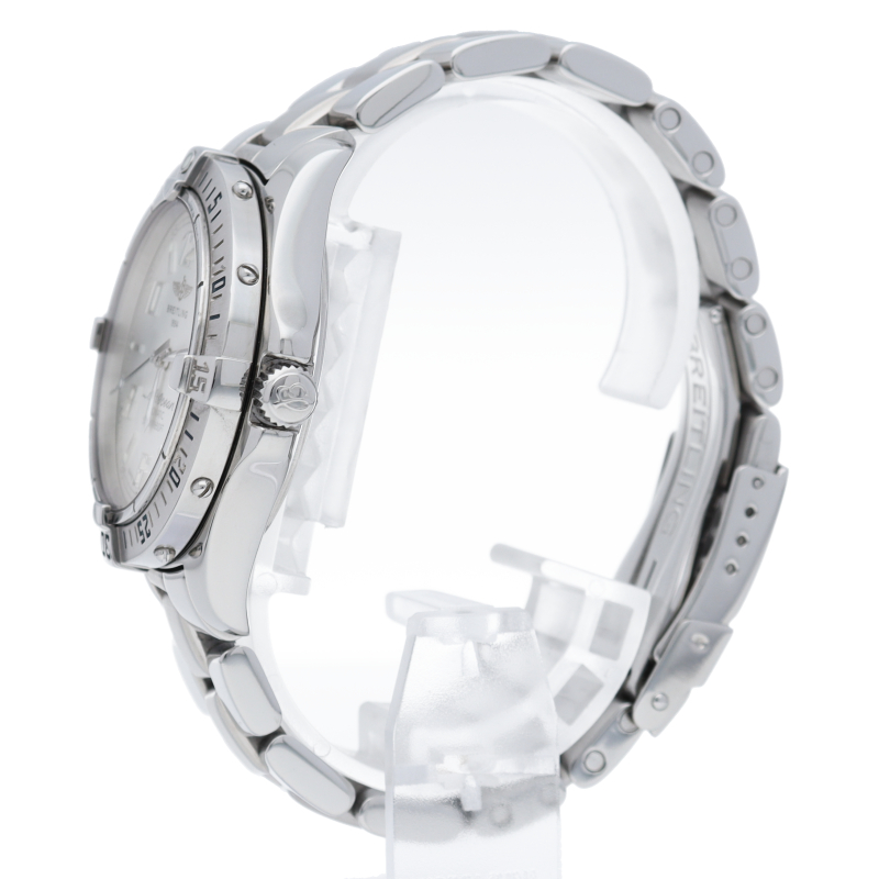「コルト オーシャン」というモデル名の通り、こちらは500m防水という高機能を搭載したダイバーズウォッチです。ブライトリングを代表する機能であるライダータブ付きの回転ベゼルも装備。
