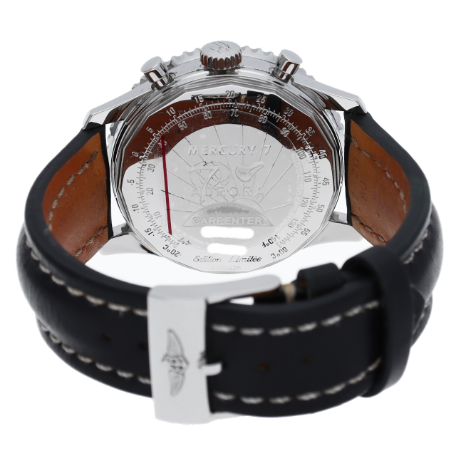 1962年にスコット・カーペンターのために開発された「コスモノート」。2012年マーキュリー計画50周年を記念して発売された、世界1962本限定モデルです。裏蓋にオーロラ・セブン号のエンブレムとシリアルナンバー刻印入りです。AB0210(A020B59KBA)。
