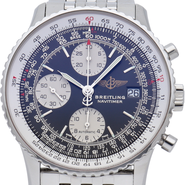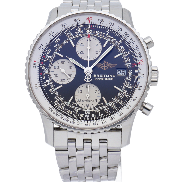 2002年に生産を終了した「オールド ナビタイマー」が日本限定販売された復刻モデルです。ムーブメントにはA13322と同じキャリバー13を搭載、特徴的な文字盤の縦目のインダイヤルが特徴的です。A132BJANP(A13324)。