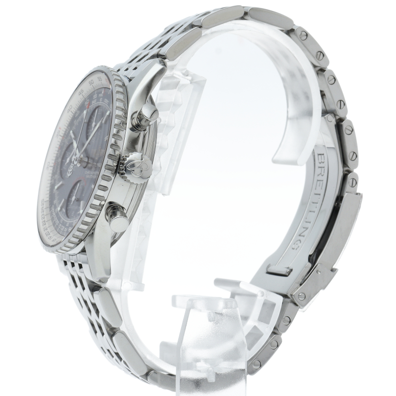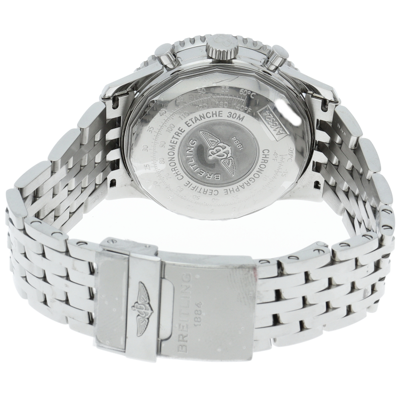 1952年発表以来、「腕に装備する計器」として多くのパイロットに愛用され、現在も時計ファンを魅了し続けるブライトリングフラッグシップ・モデル「ナビタイマー」。オールド ナビタイマーに通ずるダイヤルデザイン「縦三つ目」のインダイヤル配置、COSC公認クロノメーターブライトリング13を搭載しております。A13324/A1332412/C942