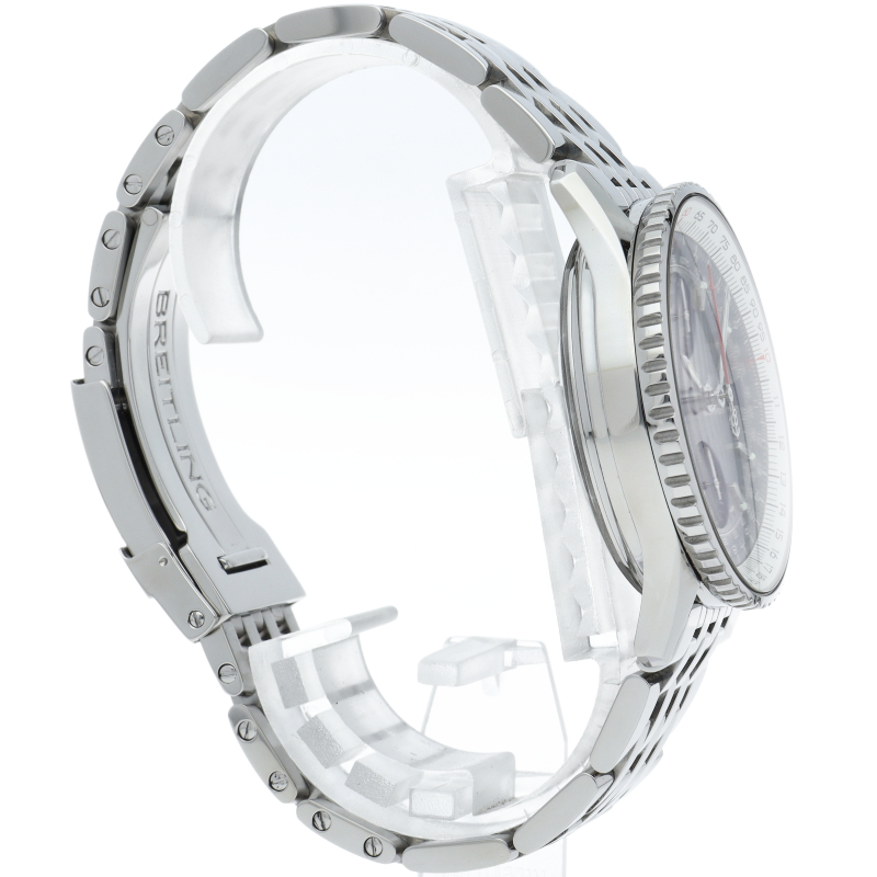ナビタイマー クロノグラフ 41は1952年の誕生以来パイロットおよび航空愛好家の間で最も愛されたモデルのケース径41mmバージョン。オリジナルモデルよりひとまわり小さいこのナビタイマーは、ダイヤルと同色のサブダイヤルが特徴です。A13324/A13324121C1A1。