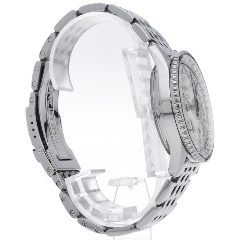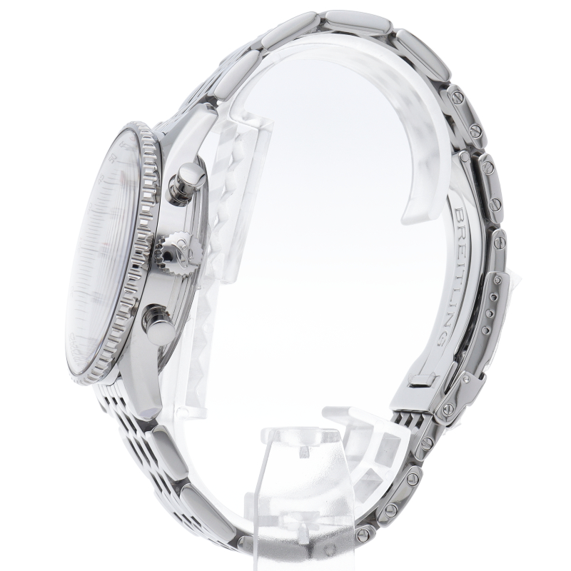 「時計ではない、計器である」ブライトリングの1990年代初頭のキャッチコピーをそのまま体現した「ナビタイマー」。回転計算尺を用いた特殊ベゼルとクロノグラフが特徴的なモデルです。バリエーションの多いラインの中でも、特に人気の高いシルバーダイヤルです。A23322/A232G32NP。