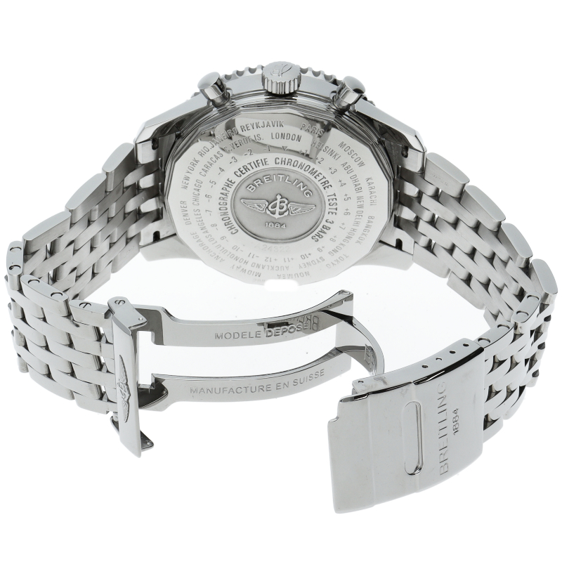ナビタイマーワールドは、世界のあらゆる時刻を表示できるナビタイマーです。搭載されているムーブメント、キャリバー24は第2タイムゾーン表示機能をそなえ、世界のあらゆる時刻を24時間スケールで表示します。A24322/A2432212/C651。
