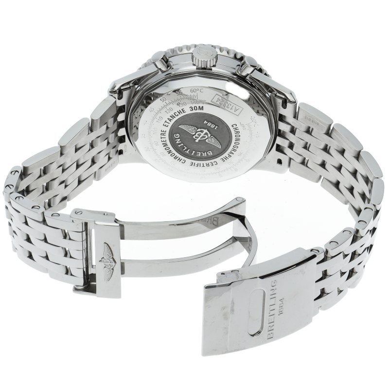 ナビタイマー クロノグラフ 41は1952年の誕生以来パイロットおよび航空愛好家の間で最も愛されたモデルのケース径41mmバージョン。 オリジナルモデルよりひとまわり小さいこのナビタイマーは、ダイヤルと同色のサブダイヤルが特徴です。A13324/A13324121B1A1。