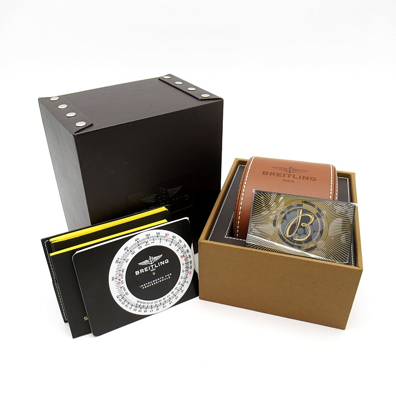 1952年の発表以来、航空時計のシンボルとして輝きつづける“ナビタイマー”。世界初の航空計算尺付きクロノグラフであり、パイロット協会AOPAの公式時計に認定された永遠の名作です。2011年ついに自社開発ムーブメントを搭載した“ナビタイマー01”が登場しました。レッドのクロノグラフ秒針と、植字インデックスの組み合わせが視認性と美しさを両立させています。AB0127/AB012721/BD09。