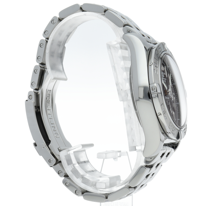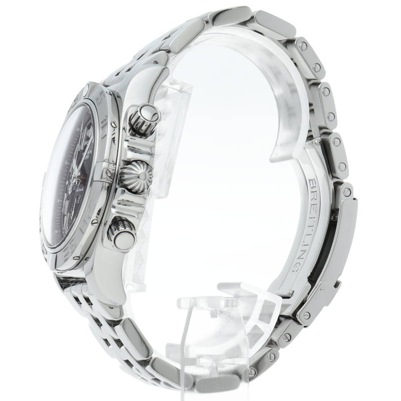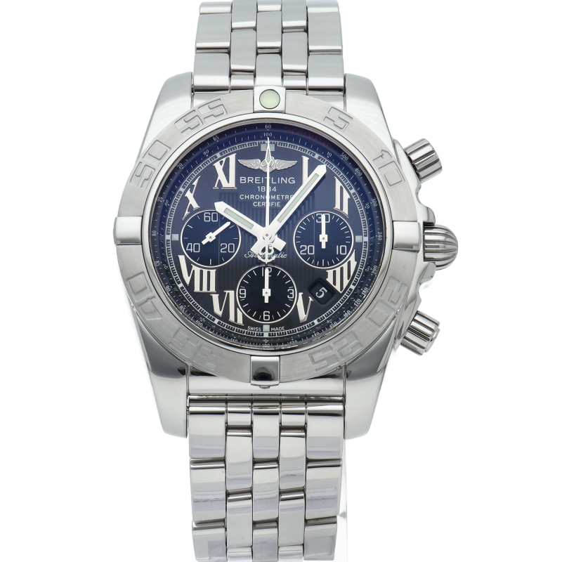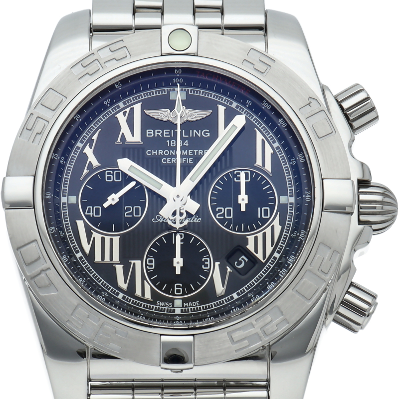 初の自社開発ムーブメント「キャリバー01」を搭載したクロノグラフです。70時間パワーリザーブを備え、コラムホイールと垂直クラッチを採用。日付調整を常時可能(24時間早送りを可能)にするカレンダー機構を搭載しています。500m防水。AB0110/AB011B56PA。