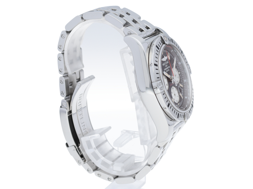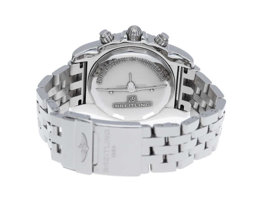 クロノマット誕生30周年を記念して作られた新しいモデルです。一昔前のエボリューションを感じさせる機械的なデザインにブライトリング自社ムーブメント「01」を搭載しております。