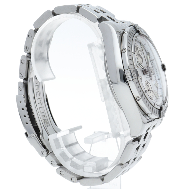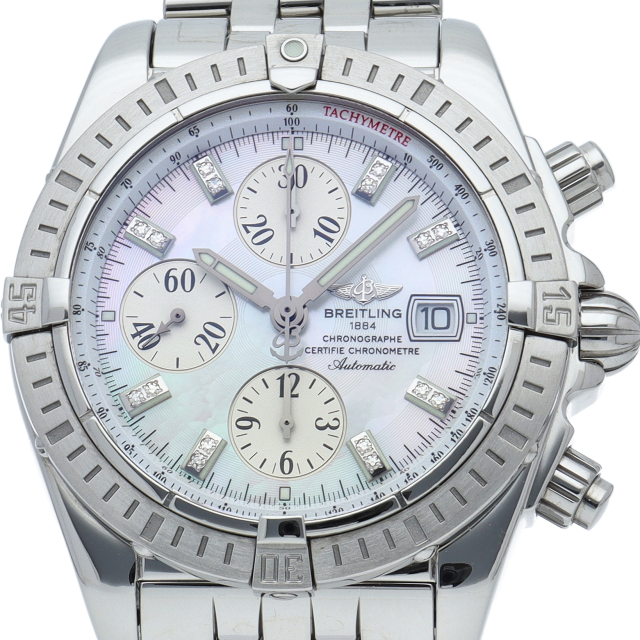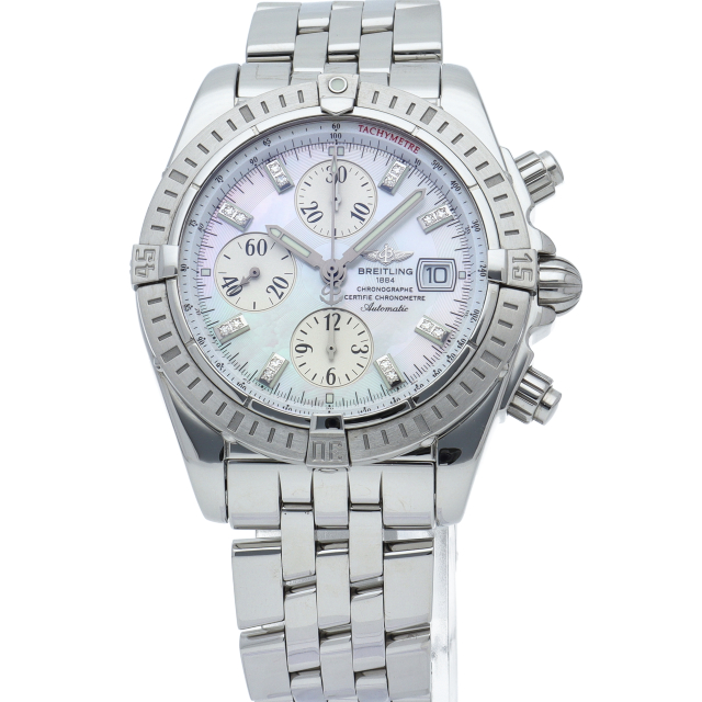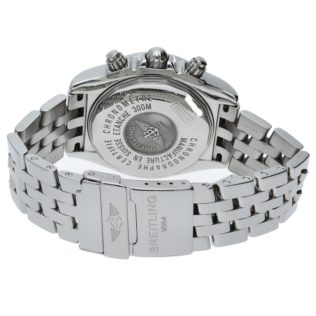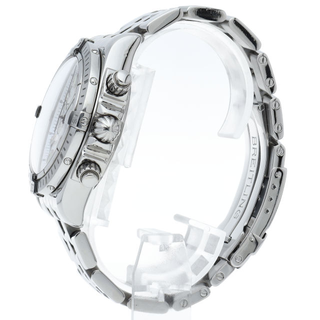 ブライトリングの生産終了となった人気モデル。存在感のあるビッグケースにデイト表示・逆回転防止ベゼルを備えたデザイン性と実用性の兼ね備えた1本。