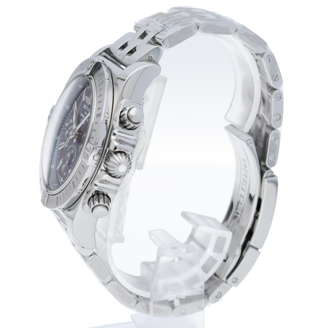 1984年の初代クロノマット誕生時に創案され、2004年に登場した“エボリューション”まで続いたライダータブ付きのサテン仕上げベゼルを採用。両サイドに蓄光塗料を配したこのモデル独自のインデックスにより、昼夜を問わず最高の視認性を実現しています。抜群の仕上げを誇る44㎜ケースは500m防水を備え、内部には自社開発製造ムーブメント、キャリバー01を搭載。日本だけの特別なモデルです。AB0115(AB011511/C956)。
