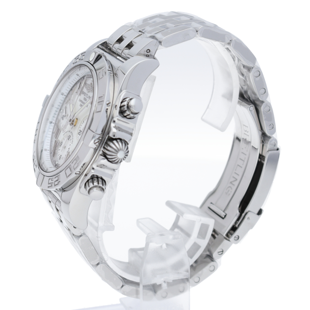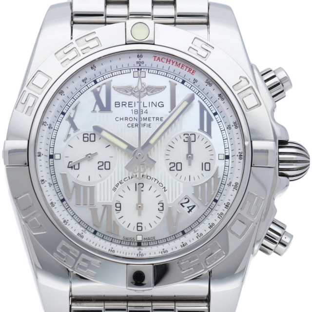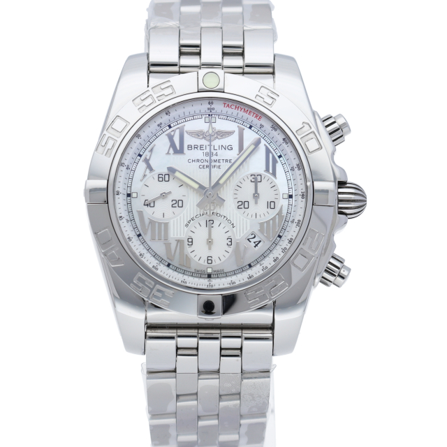 ブライトリング初の自社開発ムーブメント「B01」を搭載した「クロノマット44」。近年のブライトリングの新作中、最も注目度の高いモデル。自社開発の「キャリバーB01」を搭載した記念すべきモデルです。70時間のパワーリザーブや、常時調整可能なデイト機能など、同社のクロノグラフへの情熱が込められています。AB0110(AB011012/A773)