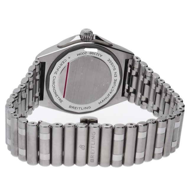 ブライトリングのフラグシップモデルとして高い人気を誇る「クロノマット」コレクション。独特なルーローブレスレットが際立ちます。ムーブメントには「Cal.ブライトリング32」を搭載。GMT機能を搭載しており、24時間スケールによりセカンドタイムゾーンを追跡、昼夜を一目で把握することができます。A32398(A32398101A1A1)