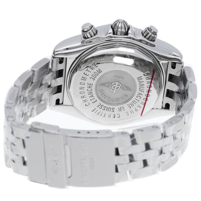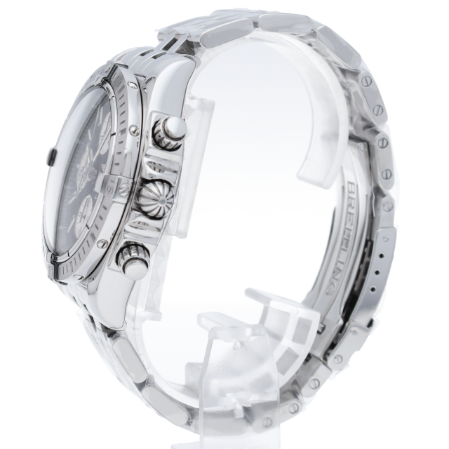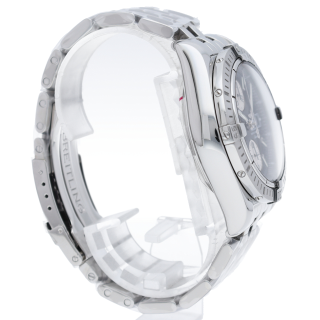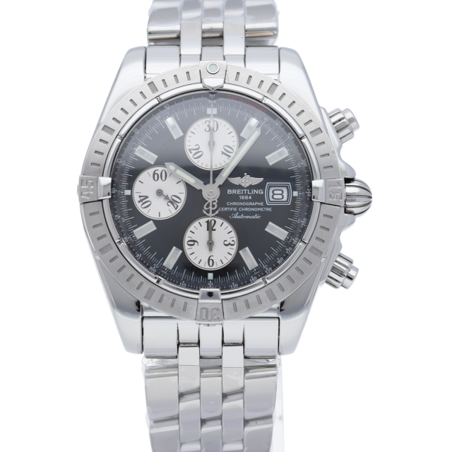 ブライトリングの生産終了となった人気モデル。存在感のあるビッグケースにデイト表示・逆回転防止ベゼルを備えたデザイン性と実用性の兼ね備えた1本。A13356(A156B19PA)