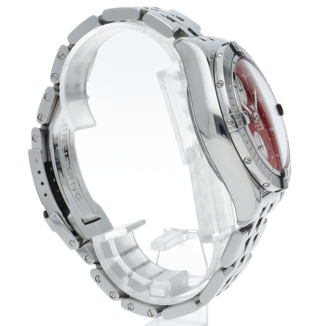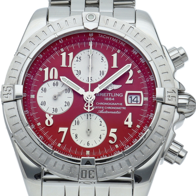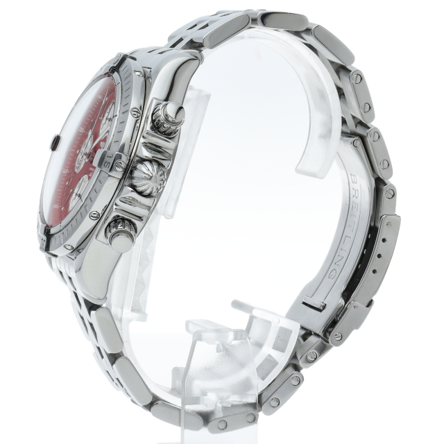 ブライトリングの生産終了となった人気モデル。存在感のあるビッグケースにデイト表示・逆回転防止ベゼルを備えたデザイン性と実用性の兼ね備えた1本。A13356(A156K08PA)。