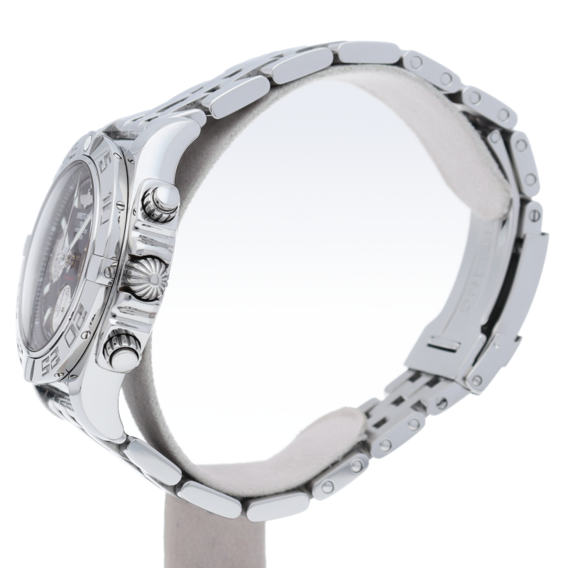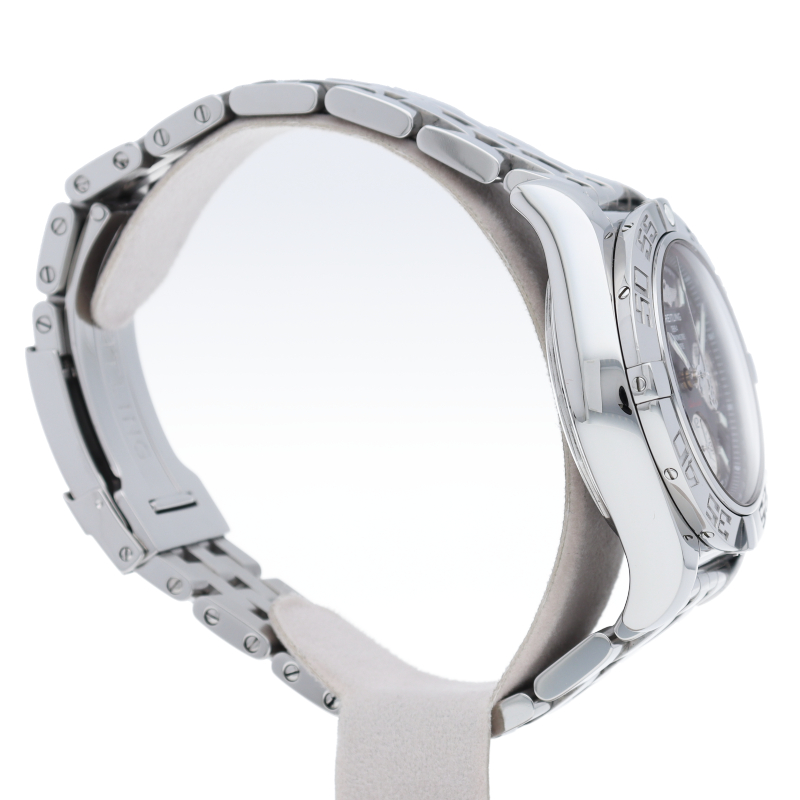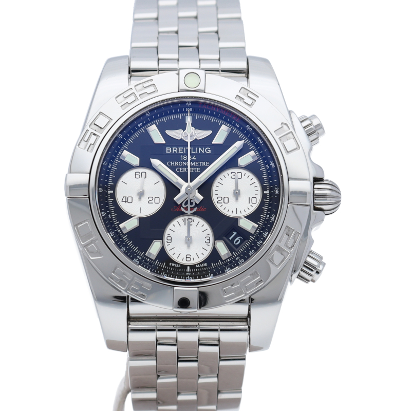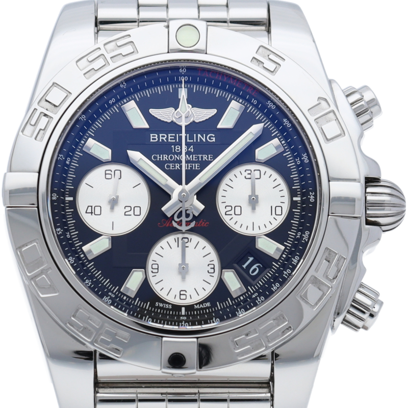 ブライトリングを代表するパイロットウォッチのフラッグシップモデルです。41ミリケースサイズのボディに、ブライトリングが完全自社開発したキャリバー01を搭載。さらにクロノグラフでありながら300メートル防水を達成した究極のパイロットウォッチです。AB0140。