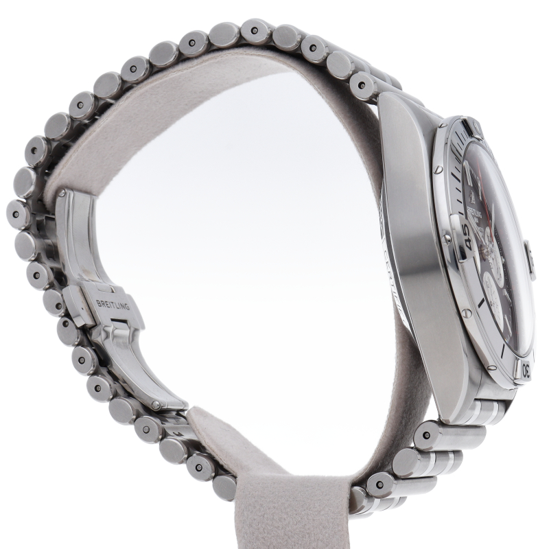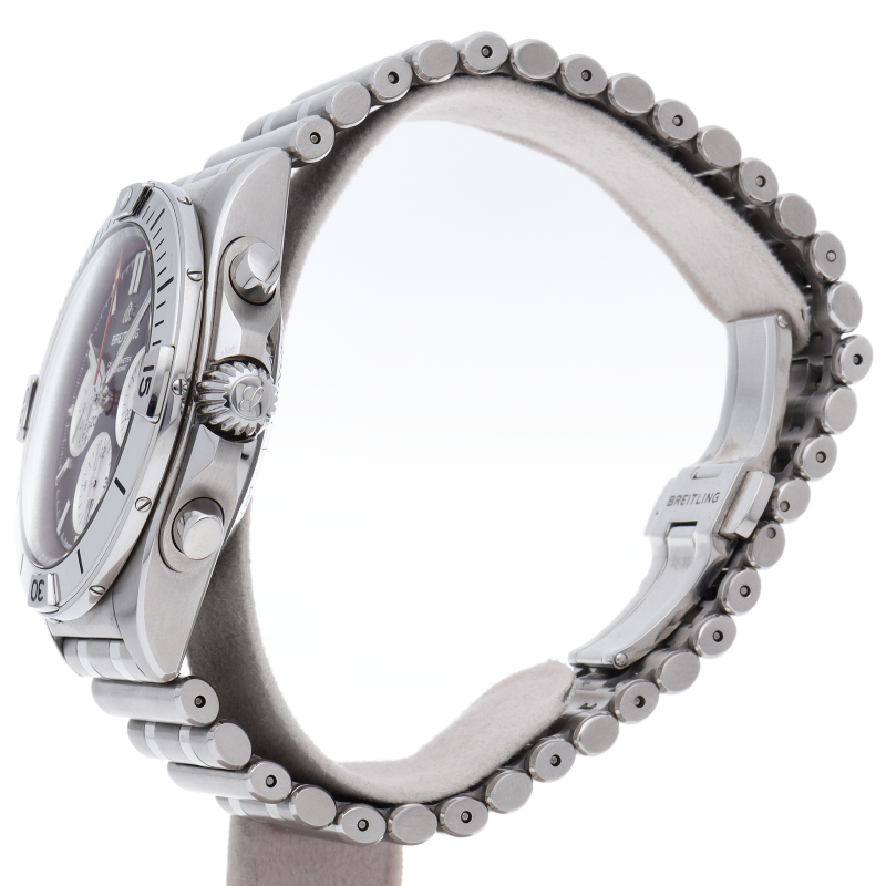 あらゆる要望に応える、ブライトリングの万能モデル。独特な「ルーロー」ブレスレットがしっくりと馴染み、42ミリケースと4カ所にライダータブを配したアイコニックなベゼルが特徴的です。またこちらはブラックとシルバーの文字盤にシルバーのクロノグラフ秒針を配置した日本限定販売仕様です。ムーブメントはCOSC公認クロノメーターのブライトリング自社開発製造キャリバー01搭載。