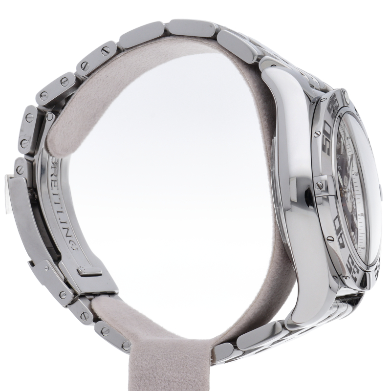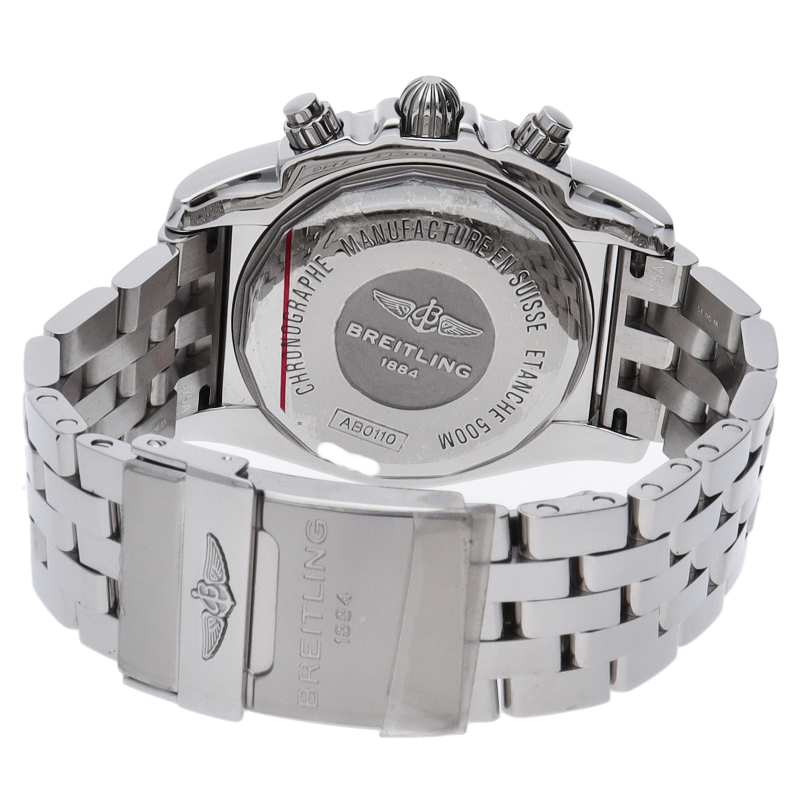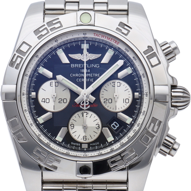 ブライトリング初の自社開発ムーブメント「B01」を搭載した「クロノマット44」。近年のブライトリングの新作中、最も注目度の高いモデル。自社開発の「キャリバーB01」を搭載した記念すべきモデルです。70時間のパワーリザーブや、常時調整可能なデイト機能など、同社のクロノグラフへの情熱が込められています。AB0110(AB0110121B1A1)。