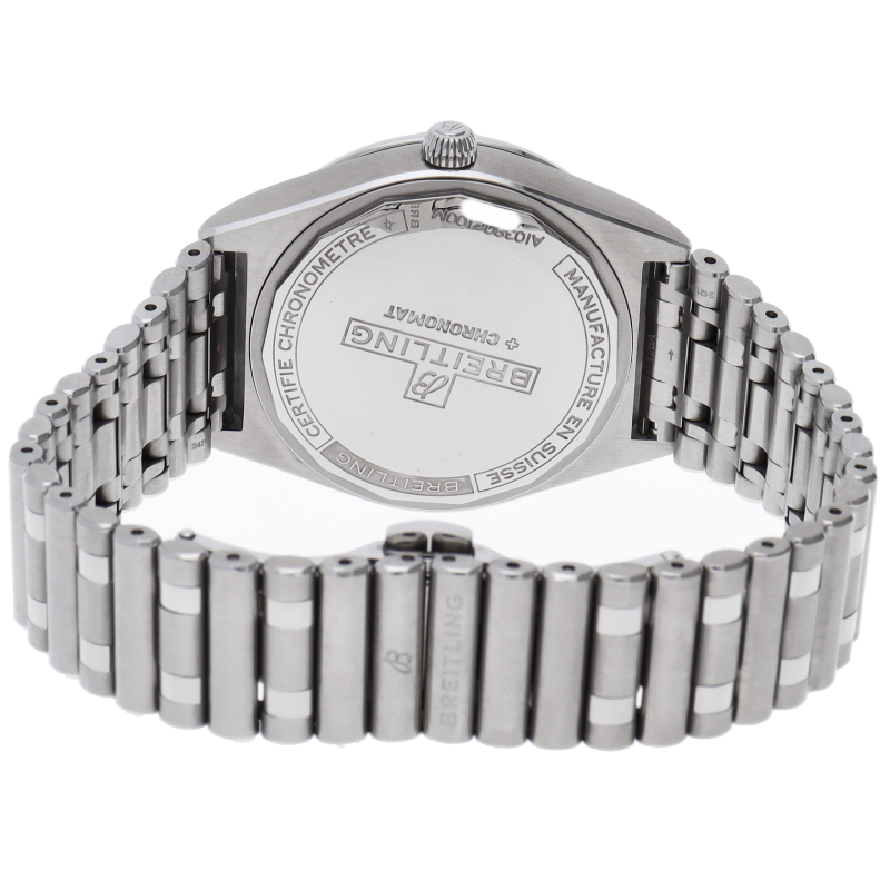 ブライトリングのフラグシップモデルとして高い人気を誇る「クロノマット」コレクション。独特なルーローブレスレットが際立ちます。ブライトリングのアイコニックな着け心地のいいバタフライクラスプ付きのルーローブレスレットを備えており、ムーブメントには42時間パワーリザーブでCOSC認定、クロノメーター規格のブライトリングキャリバー10を搭載します。A10380/A10380101C1A1