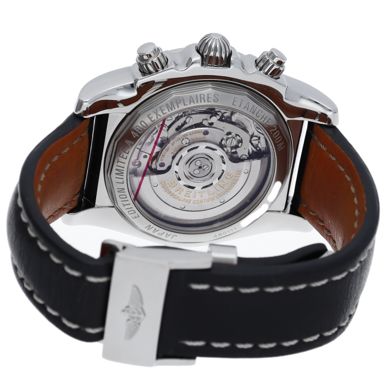 スペシャルエディションの国内限定400本の希少モデル。自社開発ムーブメント「01」とダイバークロノグラフが搭載されています。シースルーバック仕様。