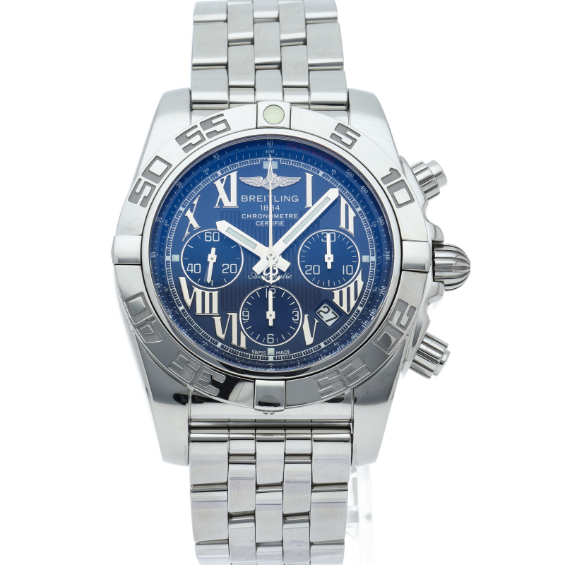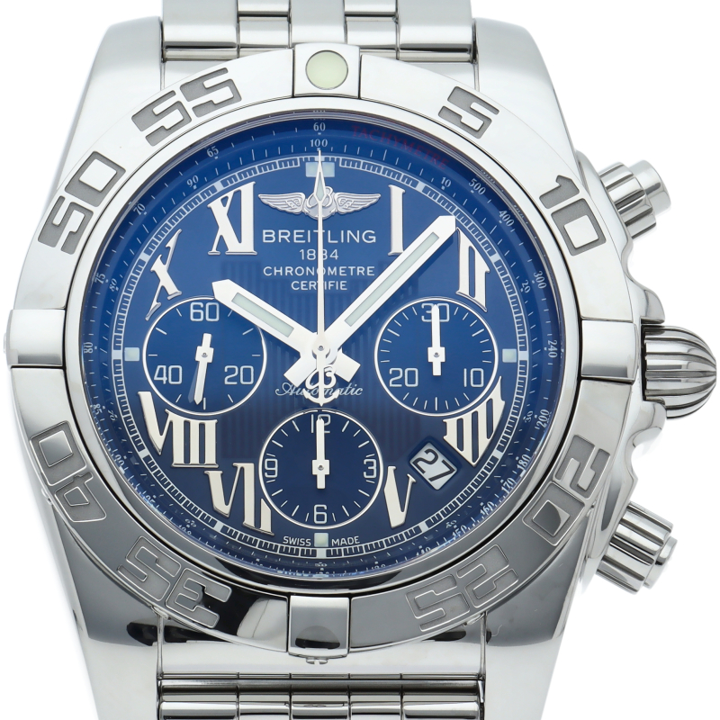 ブライトリング初の自社開発ムーブメント「B01」を搭載した「クロノマット44」。近年のブライトリングの新作中、最も注目度の高いモデル。自社開発の「キャリバーB01」を搭載した記念すべきモデルです。70時間のパワーリザーブや、常時調整可能なデイト機能など、同社のクロノグラフへの情熱が込められています。AB0110/A011C83PA