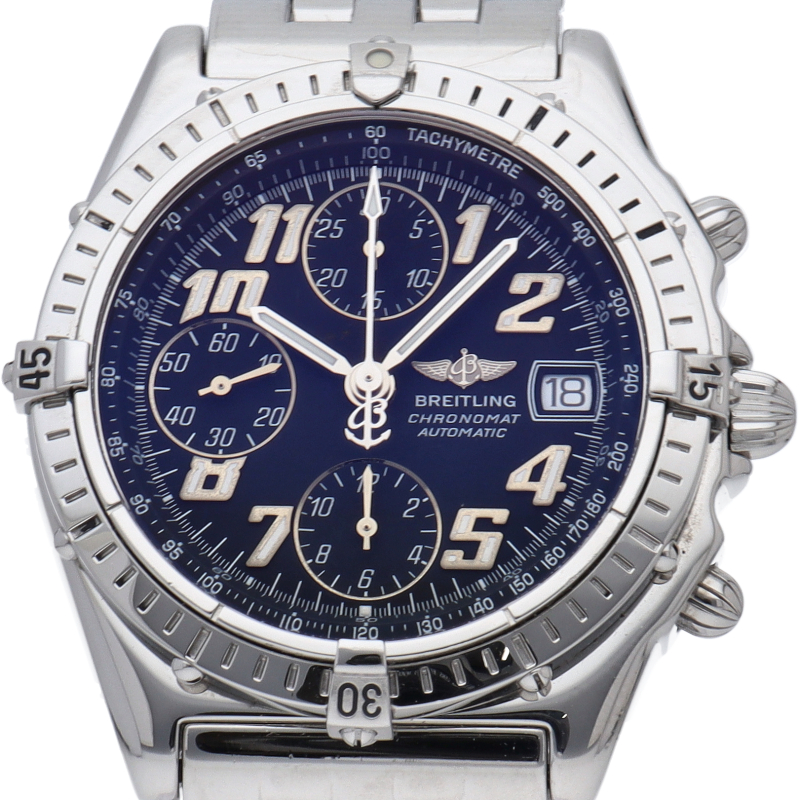 ブライトリングを代表する人気モデルであるクロノマット。直径39mmと現行型に比べると少し小振りな旧型モデルですが日本人の腕によく馴染みます。A13050.1/A137B51PA