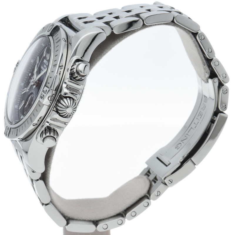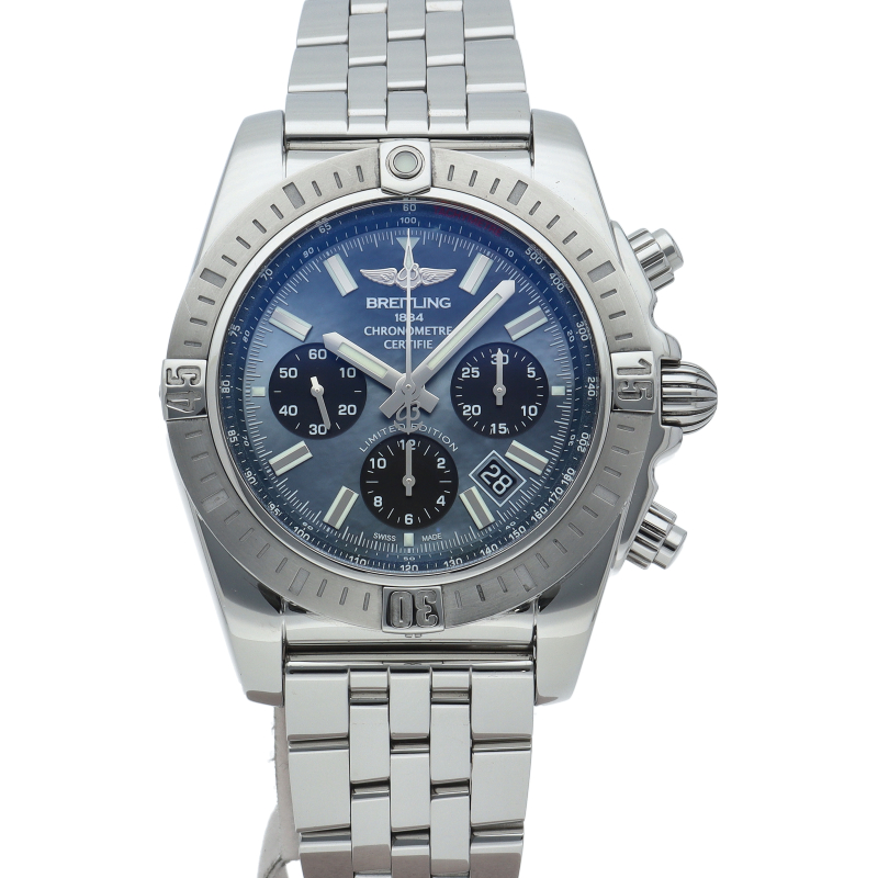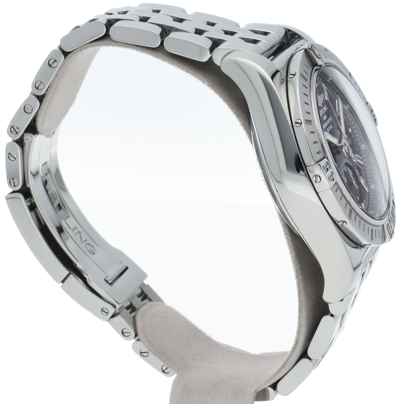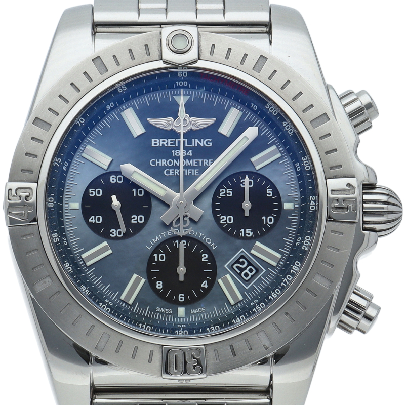 1984年の初代クロノマット誕生時に創案され、2004年に登場した“エボリューション”まで続いたライダータブ付きのサテン仕上げベゼルを採用。両サイドに蓄光塗料を配したこのモデル独自のインデックスにより、昼夜を問わず最高の視認性を実現しています。抜群の仕上げを誇る44㎜ケースは500m防水を備え、内部には自社開発製造ムーブメント、キャリバー01を搭載。日本だけの特別なモデルです。AB0115/AB01152A/BH20。