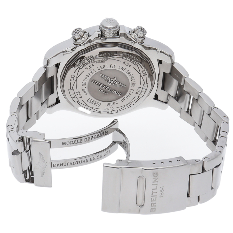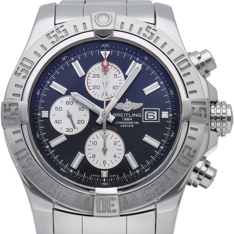 ケース径48mmの大型ダイバークロノグラフ「スーパーアベンジャーII」。過酷な使用環境を想定し、極厚のサファイヤクリスタルガラスや、プロテクタに保護されたねじ込みロック式リューズなどを採用しています。A13371/A1337111/BC29