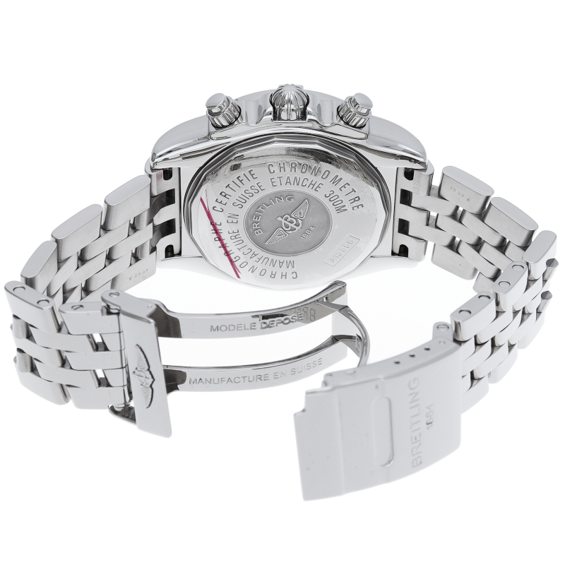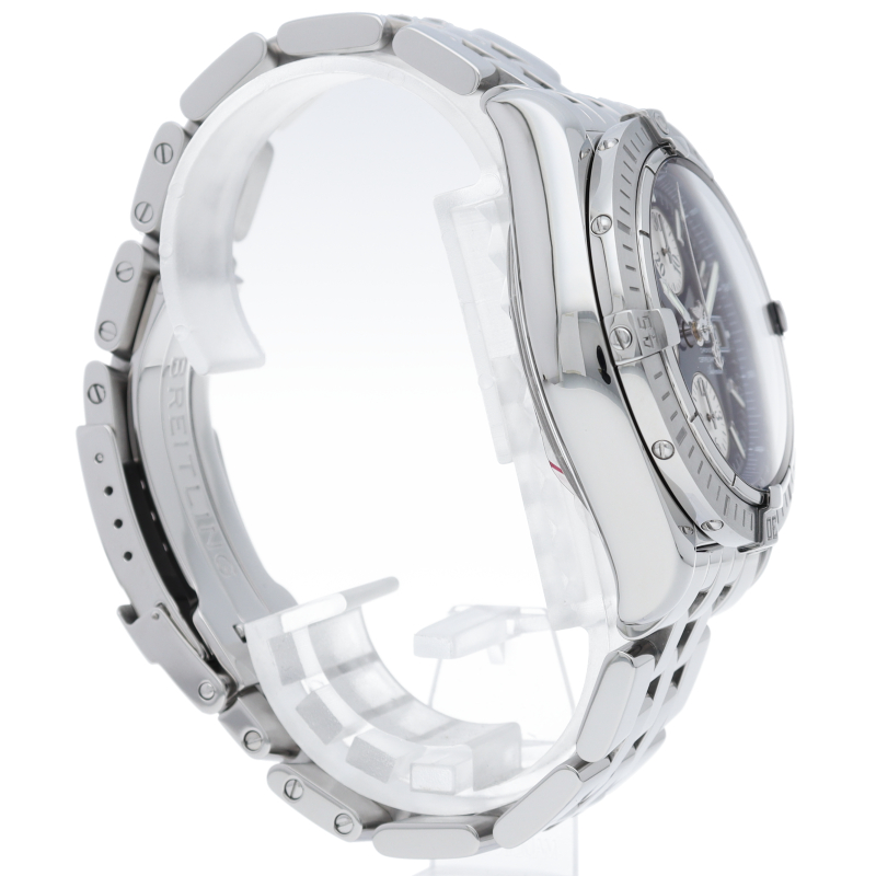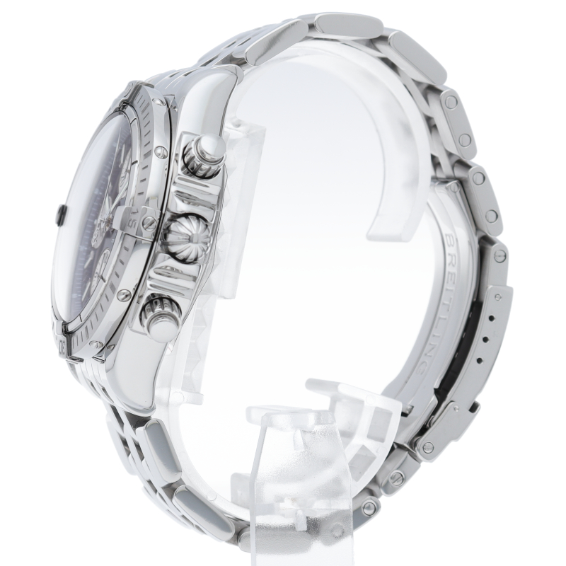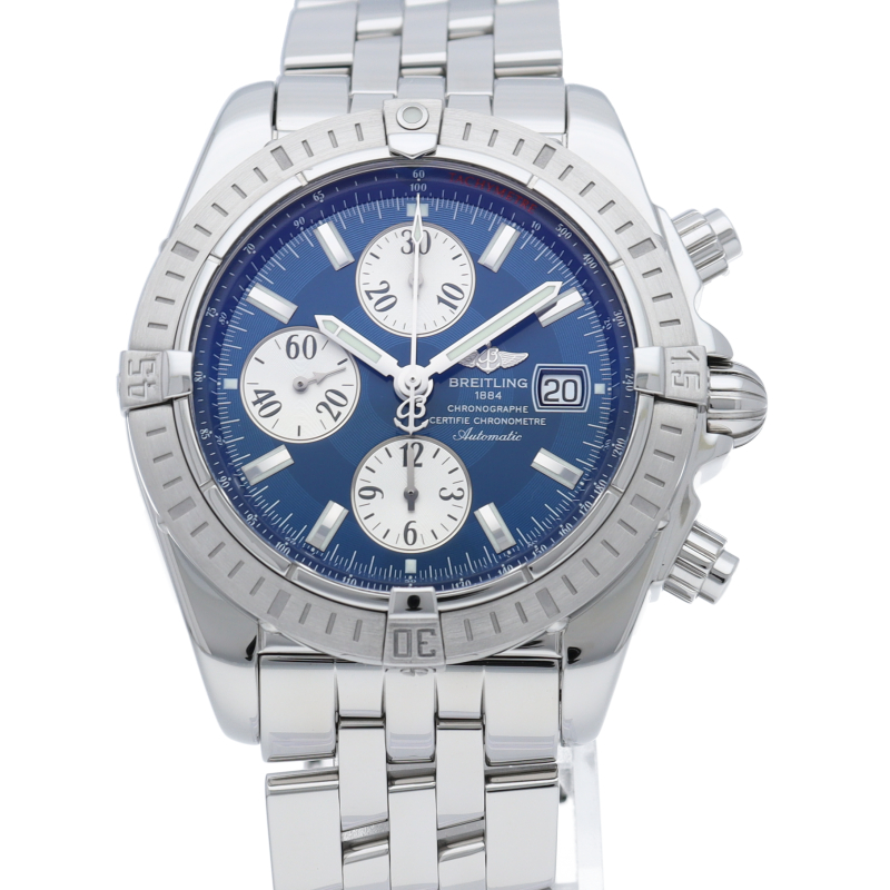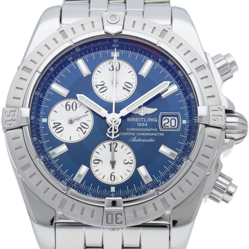 ブライトリングの生産終了となった人気モデル。存在感のあるビッグケースにデイト表示・逆回転防止ベゼルを備えたデザイン性と実用性の兼ね備えた1本。A13356/A156C45PA。