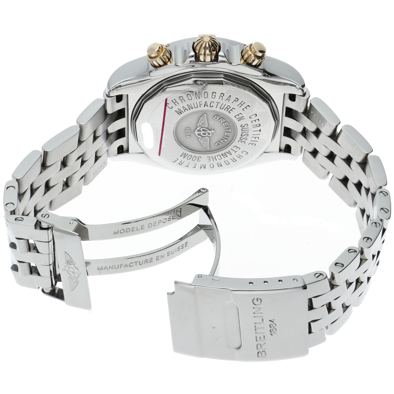 存在感のあるビッグケースにデイト表示・逆回転防止ベゼルを備えた、ステンレスとイエローゴールドのコンビが華やか。デザイン性と実用性を兼ね備えた1本です。B13356/B156C46PA。