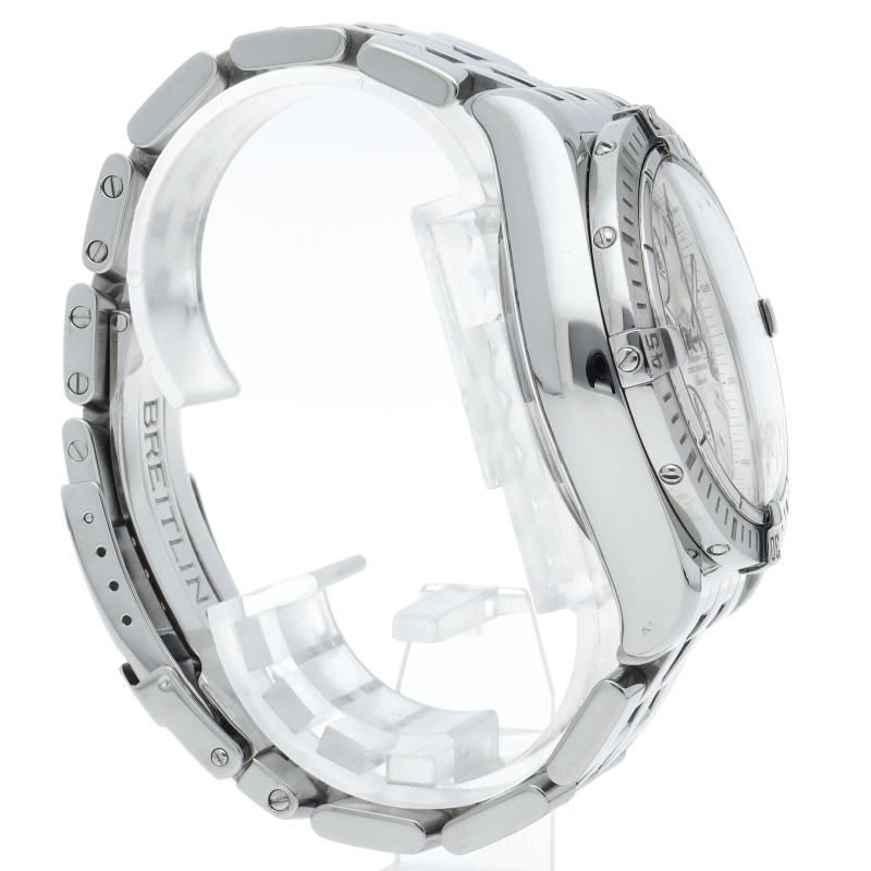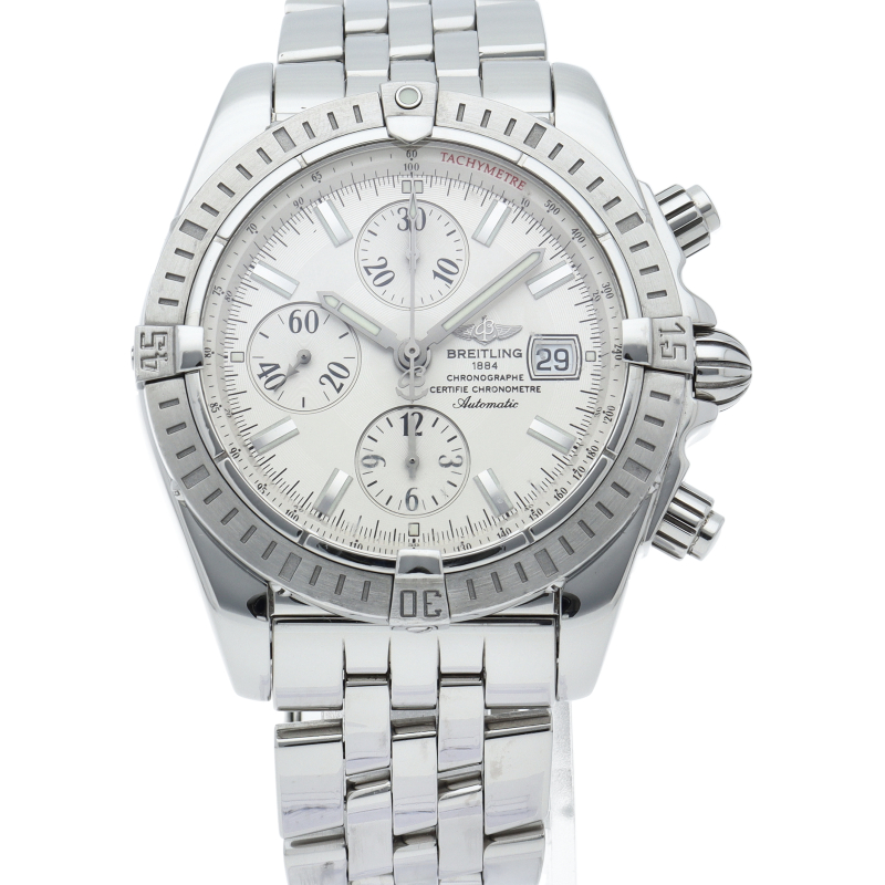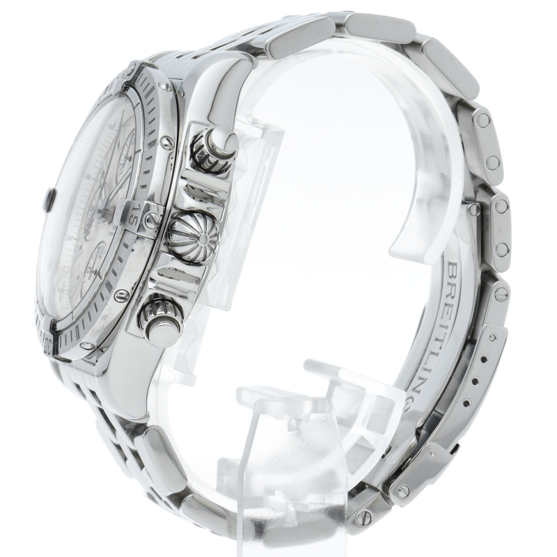ブライトリングの生産終了となった人気モデル。存在感のあるビッグケースにデイト表示・逆回転防止ベゼルを備えたデザイン性と実用性の兼ね備えた1本。A13356/A156A73PA。