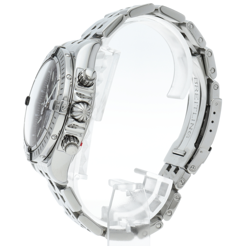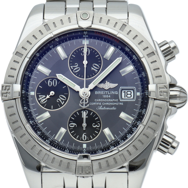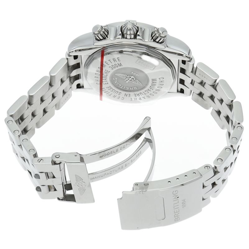 ブライトリングの生産終了となった人気モデル。存在感のあるビッグケースにデイト表示・逆回転防止ベゼルを備えたデザイン性と実用性の兼ね備えた1本。A13356/A156F17PA。