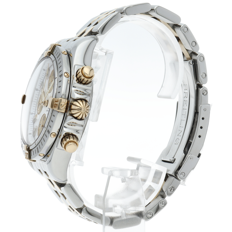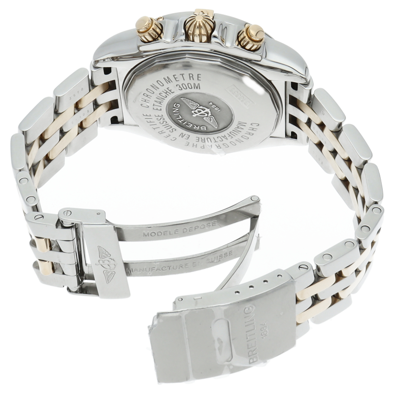 存在感のあるビッグケースにデイト表示・逆回転防止ベゼルを備えた、ステンレスとイエローゴールドのコンビが華やか。デザイン性と実用性を兼ね備えた1本です。B13356/B156A77WBD