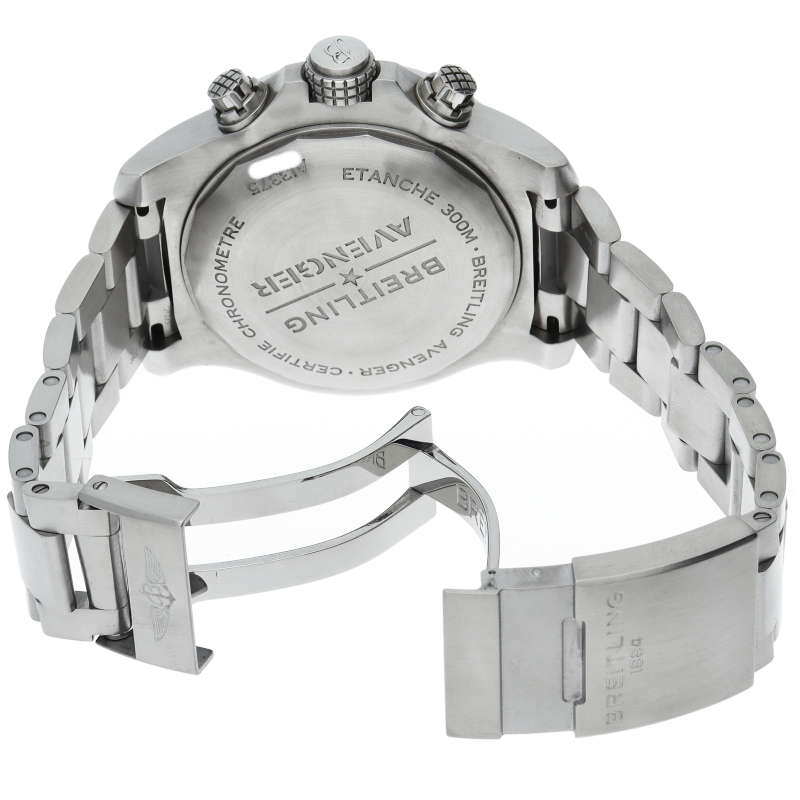 ケース径48mmの大型ダイバークロノグラフ「スーパーアベンジャーII」。過酷な使用環境を想定し、極厚のサファイヤクリスタルガラスや、プロテクタに保護されたねじ込みロック式リューズなどを採用しています。A13375/A13375101B1A1