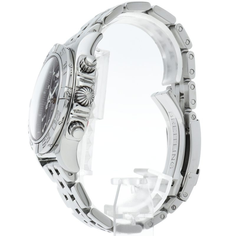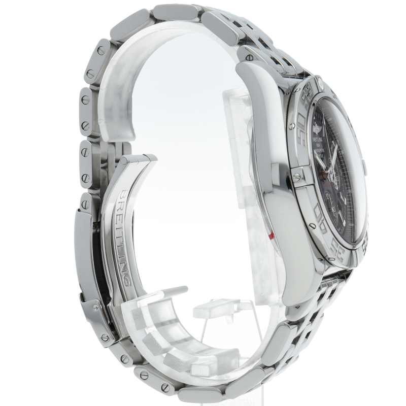 ブライトリング初の自社開発ムーブメント「B01」を搭載した「クロノマット44」。近年のブライトリングの新作中、最も注目度の高いモデル。自社開発の「キャリバーB01」を搭載した記念すべきモデルです。70時間のパワーリザーブや、常時調整可能なデイト機能など、同社のクロノグラフへの情熱が込められています。AB0110/A011C89PA。