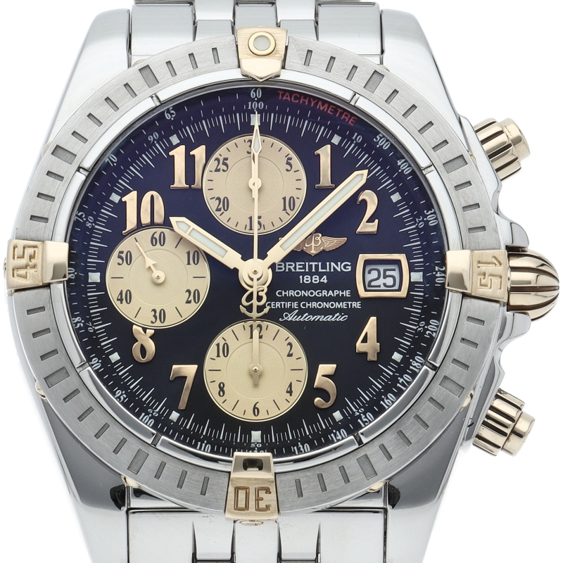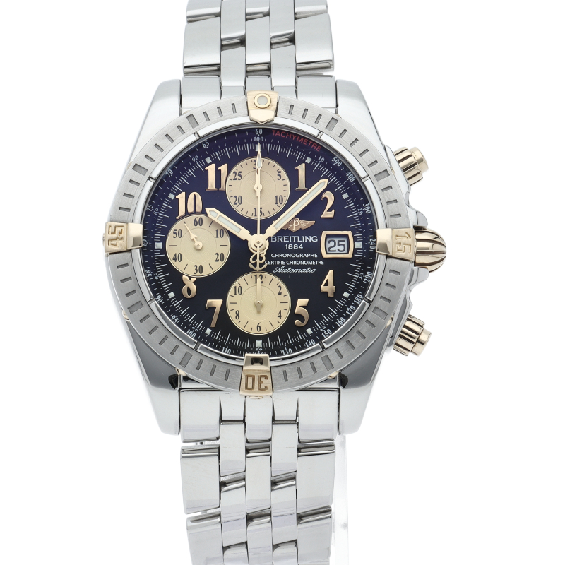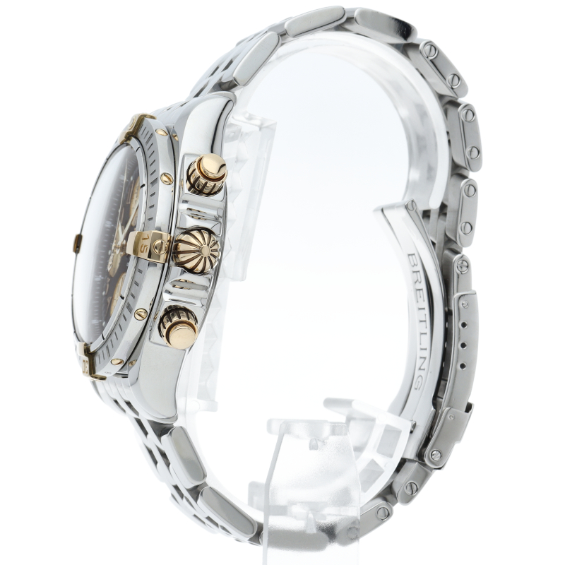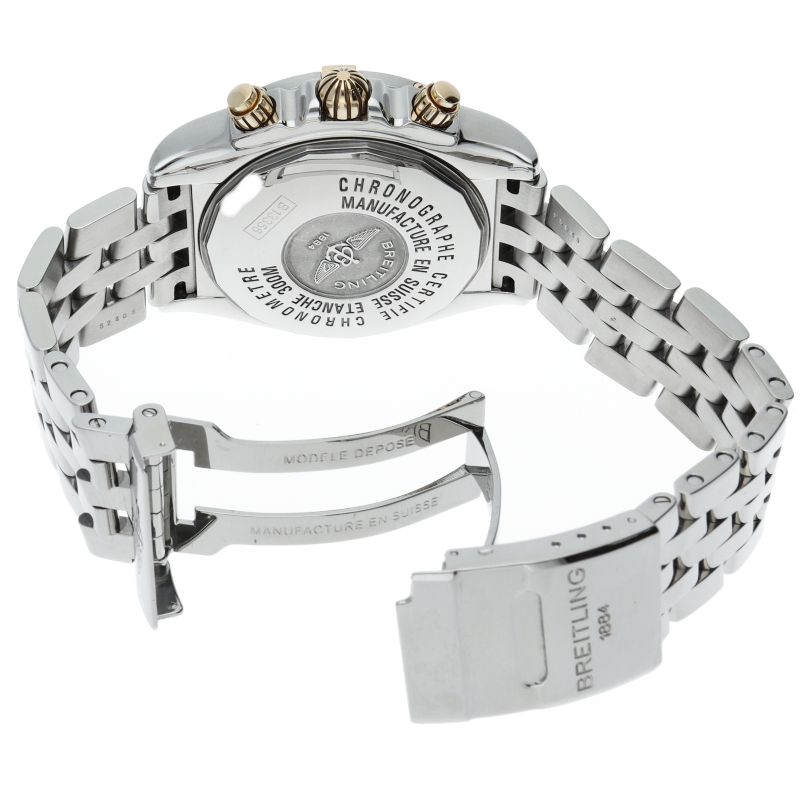 存在感のあるビッグケースにデイト表示・逆回転防止ベゼルを備えた、ステンレスとイエローゴールドのコンビが華やか。デザイン性と実用性を兼ね備えた1本です。B13356/B156B23PA