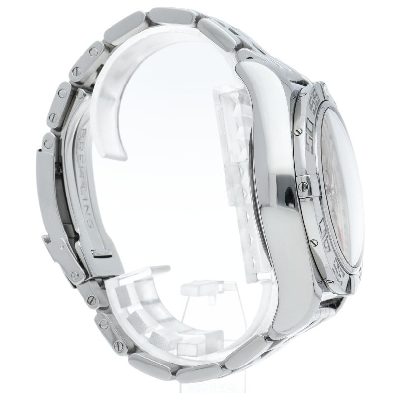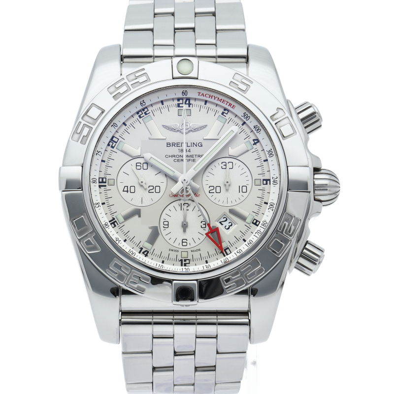 赤いGMT針は視認性の良さに貢献しているだけではなく、デザイン上のアイキャッチにもなっています。ポリッシュになった光輝くブレスに迫力の大型ケース。付ける物を満足させてくれます。AB0410/A041G19PA