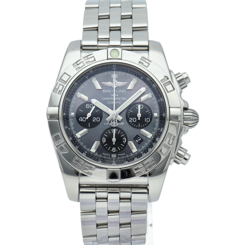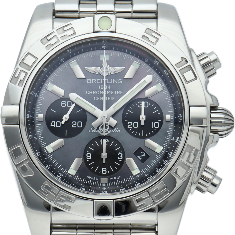 2013年に発売された、ブラックMOP(マザー・オブ・パール)文字盤のスペシャルエディションの国内限定400本の希少モデル。自社開発ムーブメント「01」とダイバークロノグラフが搭載されています。シースルーバック仕様。AB0111(AB01114K/BD34)。