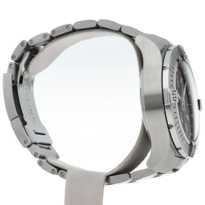 ケース径48mmの大型ダイバークロノグラフ「スーパーアベンジャーII」。過酷な使用環境を想定し、極厚のサファイヤクリスタルガラスや、プロテクタに保護されたねじ込みロック式リューズなどを採用しています。A13375/A13375101B1A1。