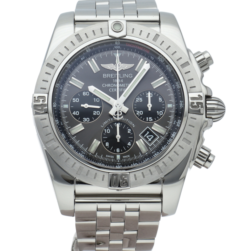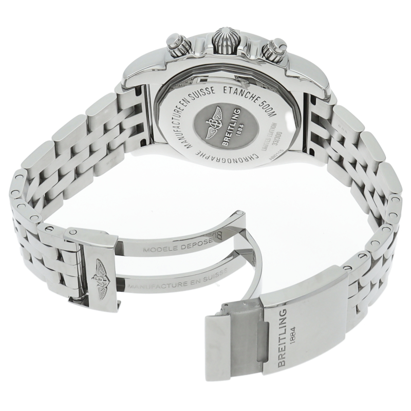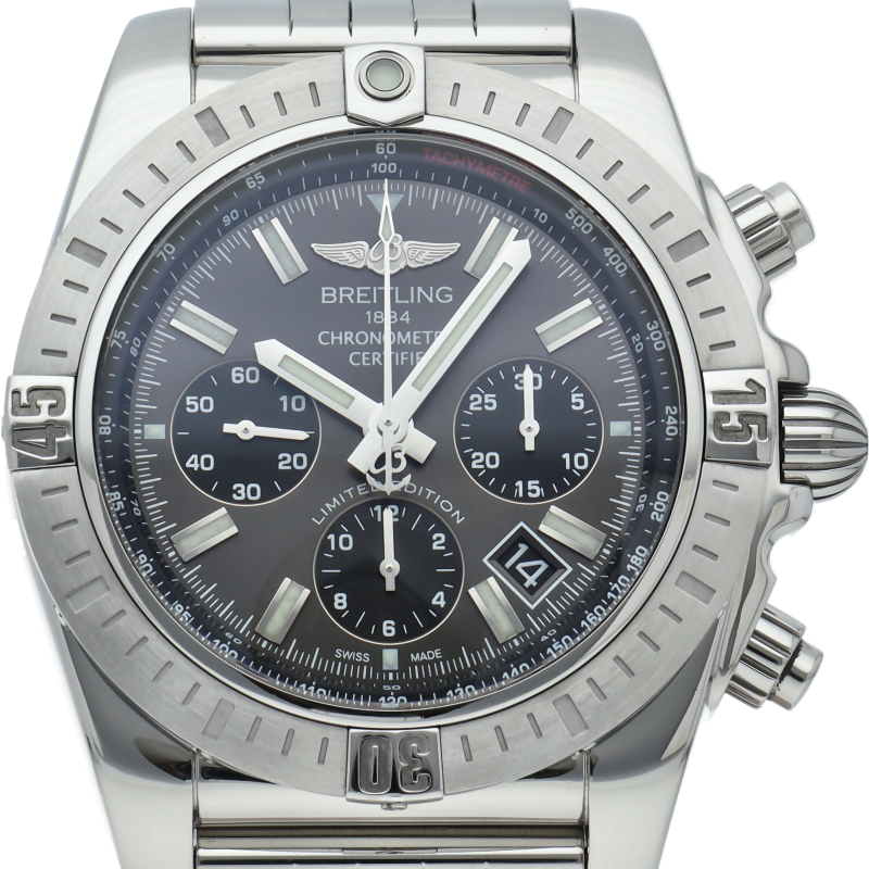 ブライトリング初の完全自社開発・自社製造のクロノグラフキャリバーB01を搭載。500m防水性能へのスペックアップも注目を集めています。ダイヤルはグレーとブラックでデザインされた日本300本限定モデル。