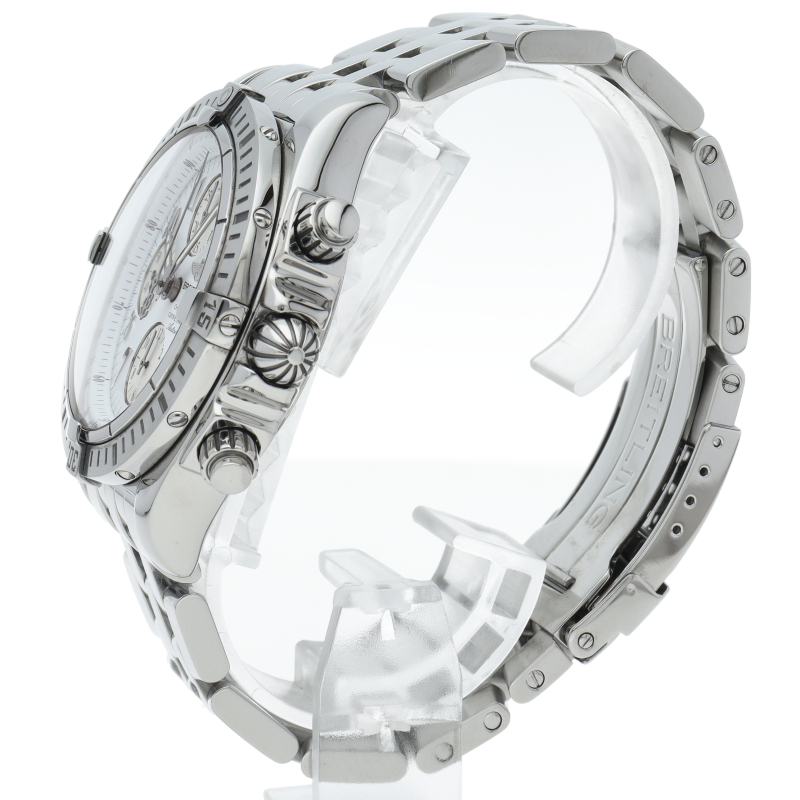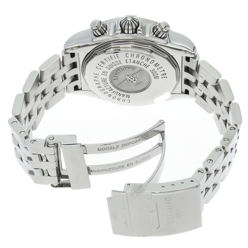 ブライトリングの生産終了となった人気モデル。存在感のあるビッグケースにデイト表示・逆回転防止ベゼルを備えたデザイン性と実用性の兼ね備えた1本。A13356/A156A73PA