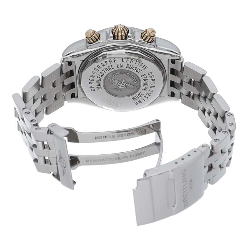 存在感のあるビッグケースにデイト表示・逆回転防止ベゼルを備えた、ステンレスとイエローゴールドのコンビが華やか。デザイン性と実用性を兼ね備えた1本です。B13356/B156B23PA
