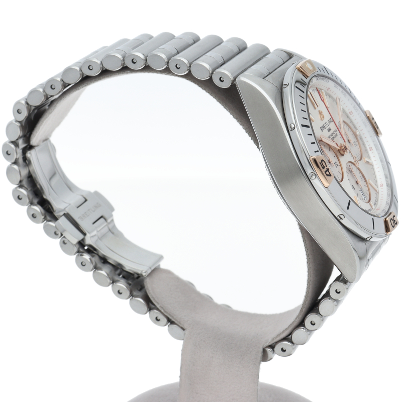 あらゆる要望に応える、ブライトリングの万能モデル。独特な「ルーロー」ブレスレットがしっくりと馴染み、42ミリケースと4カ所にライダータブを配したアイコニックなベゼルが特徴的。文字盤は4種類展開されていて、こちらは上品でどこかクラシカルなカッパー(銅)カラーのモデルです。ムーブメントはCOSC公認クロノメーターのブライトリング自社開発製造キャリバー01です。