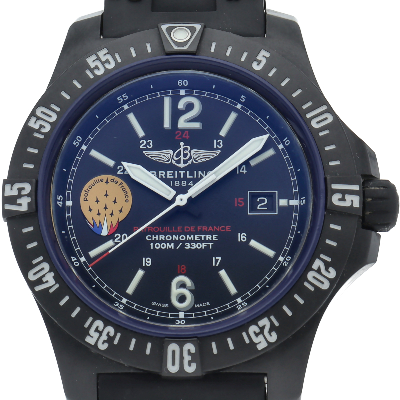 フランス空軍のアクロバットチーム「パトレイユ・ド・フランス」とのコラボレーションモデル世界1000本限定 チタンの約1/3の軽量さを誇る独自素材「ブライトライト」製ケース ラバーストラップ 穴留め式の尾錠仕様